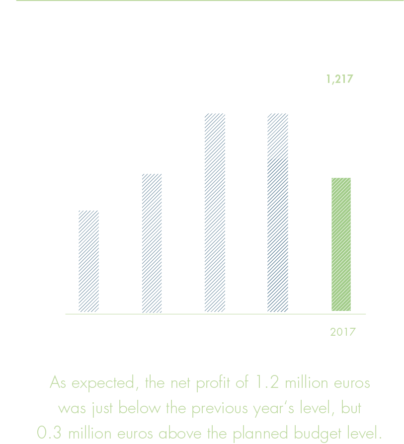 The personnel costs in 2017 increased notably compared to the previous year – in 2016 there was no collectively agreed salary increase – and increased by 2.0 million euros to 52.8 million euros.